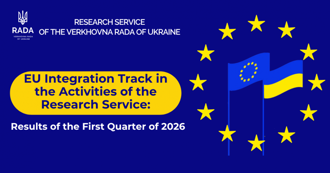 In the first quarter of 2026, the Research Service of the Verkhovna Rada of Ukraine continued its systematic work on providing informational and analytical support for the EU integration activities of Parliament. During the reporting period, a number of analytical and informational materials were prepared, including on the following topics: