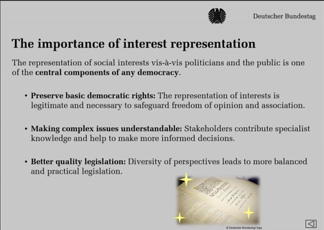 - the legal framework regulating the representation of special interests;