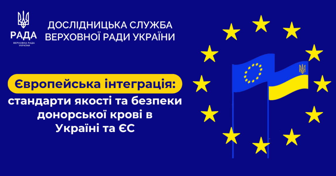 Дослідницька служба Верховної Ради України підготувала парламентське дослідження щодо законодавчого забезпечення стандартів якості та безпеки донорської крові та її компонентів в Україні, Європейському Союзі та окремих європейських державах. У матеріалі представлено результати аналізу законодавства України та ЄС у цій сфері, зокрема положень Закону України «Про безпеку та якість донорської крові та компонентів крові», у контексті виконання зобов’язань за Угодою про асоціацію та наближення до acquis ЄС.