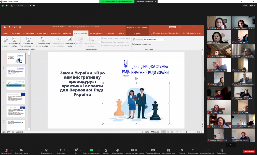 4–5 березня 2025 року в Дослідницькій службі відбувається навчання за спеціальною короткостроковою програмою підвищення кваліфікації «Закон України «Про адміністративну процедуру»: практичні аспекти для Верховної Ради України» для народних депутатів України, працівників Апарату Верховної Ради України, помічників-консультантів народних депутатів України, а також представників органів державної влади, органів місцевого самоврядування та інших юридичних і фізичних осіб (на договірних засадах).