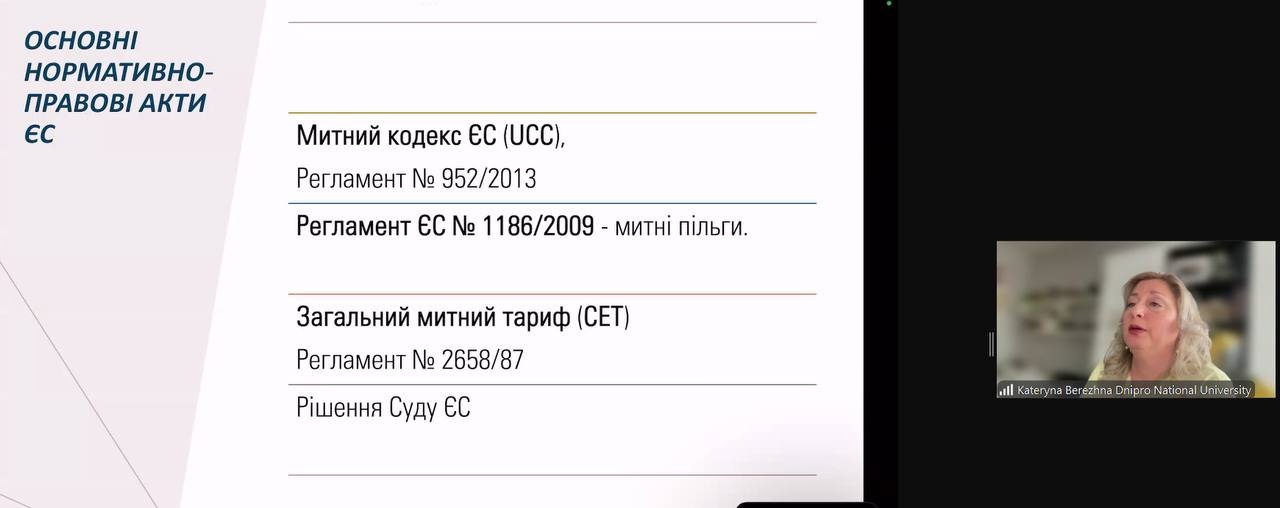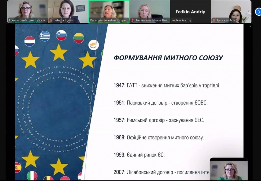 19 березня 2025 року в межах співпраці Дослідницької служби Верховної Ради України та Дніпровського національного університету імені Олеся Гончара відбувся освітній вебінар на тему: «Митний союз» (відповідно до розділу 19 переговорного процесу вступу України до Європейського Союзу).