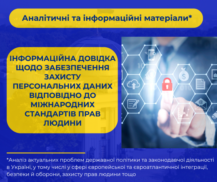 В інформаційній довідці викладено результати аналізу стану імплементації Україною міжнародних стандартів у сфері захисту персональних даних. Акцентовано увагу на правах учасників відносин у сфері обробки персональних даних, гарантіях дотримання цих прав, а також діяльності наглядового органу в зазначеній сфері.