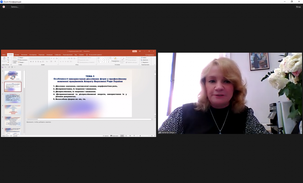 Мета освітнього заходу – підвищення рівня комунікативної культури учасників професійного навчання у сфері ділових відносин в усній та писемній формах, мовної грамотності, вдосконалення знань і практичних навичок щодо використання мовних норм в усному й писемному мовленні у професійній діяльності державних службовців Апарату Верховної Ради України.
