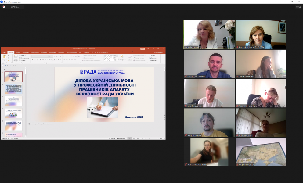 Із 26 до 28 серпня 2025 року в Дослідницькій службі відбулося навчання за спеціальною короткостроковою програмою підвищення кваліфікації «Ділова українська мова у професійній діяльності працівників Апарату Верховної Ради України» для народних депутатів України, працівників Апарату Верховної Ради України та помічників-консультантів народних депутатів України.