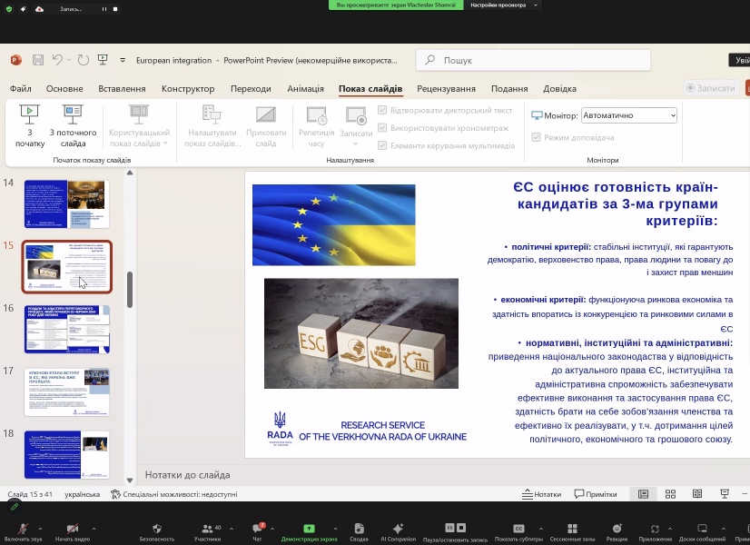 02 вересня 2025 року у Дослідницькій службі Верховної Ради України відбулося навчання працівників Апарату Верховної Ради України за спеціальною короткостроковою програмою підвищення кваліфікації «Євроінтеграція в умовах війни: стан, проблеми, виклики» для народних депутатів України, працівників Апарату Верховної Ради України, помічників-консультантів народних депутатів України, а також представників органів державної влади, органів місцевого самоврядування та інших юридичних і фізичних осіб (на договірних засадах).