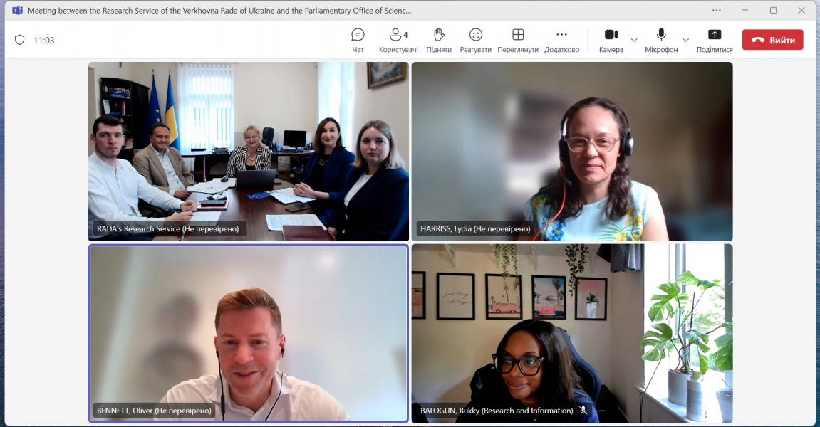 Дослідницька служба Верховної Ради України провела онлайн-зустріч з колегами з Парламентського офісу науки і технологій (POST) та Бібліотеки Палати громад Великої Британії.