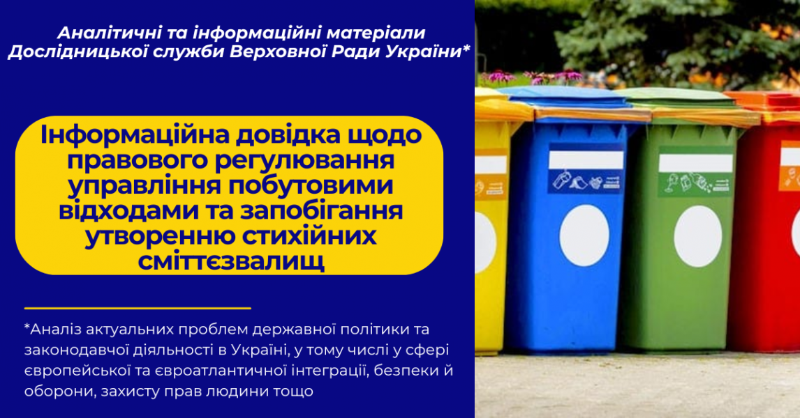 В інформаційній довідці проаналізовано правове регулювання управління побутовими відходами в Україні з урахуванням останніх змін. Наведено приклади державних та місцевих ініціатив щодо боротьби зі стихійними сміттєзвалищами. Висвітлено підстави притягнення до відповідальності за порушення правил поводження з відходами.
