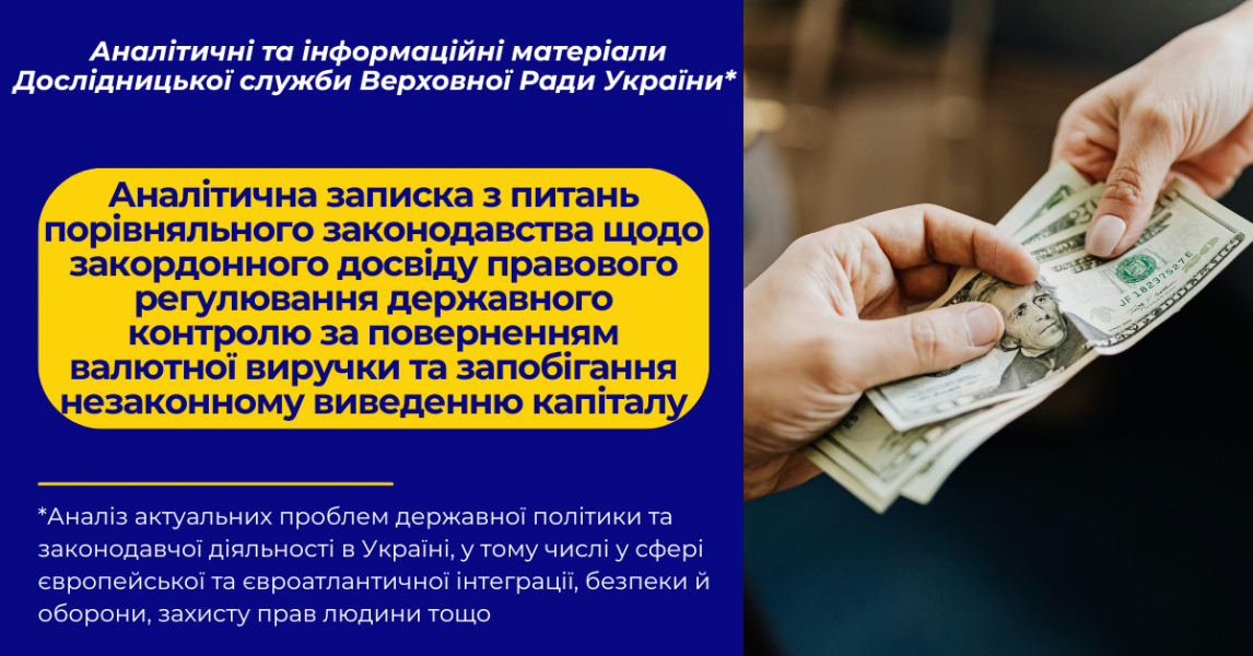 В аналітичній записці представлено результати дослідження правового регулювання у сферах повернення валютної виручки та запобігання незаконному виведенню капіталу в Європейському Союзі та окремих державахчленах із метою пошуку шляхів удосконалення національного законодавства.
