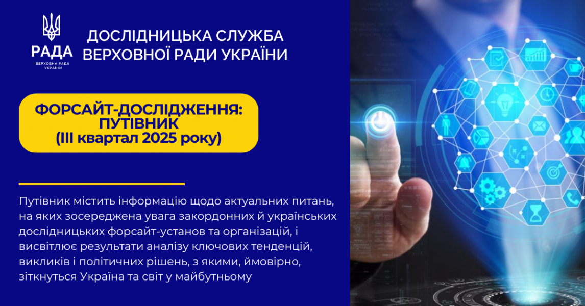 Путівник містить інформацію щодо актуальних питань, на яких зосереджена увага закордонних й українських дослідницьких форсайт-установ та організацій, і висвітлює результати аналізу ключових тенденцій, викликів і політичних рішень, з якими, ймовірно, зіткнуться Україна та світ у майбутньому.