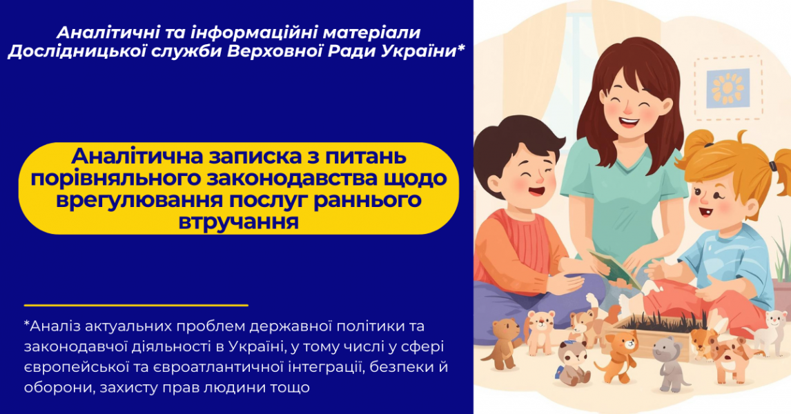 В аналітичній записці викладено результати аналізу засад рамкової політики Європейського Союзу щодо гарантій доступу до якісних послуг для дітей, зокрема тих, які перебувають під загрозою бідності та соціальної ізоляції. Увагу приділено законодавчому регулюванню послуг раннього втручання в окремих європейських державах. Проаналізовано нормативно-правові акти Португалії та Польщі з питань формування систем раннього розвитку та раннього втручання. Висвітлено концептуальні аспекти, критерії та принципи надання послуг раннього втручання.