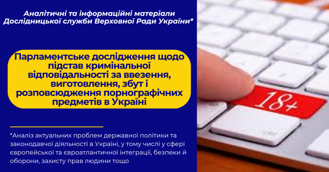 У парламентському дослідженні розглядаються питання законодавчого визначення підстав кримінальної відповідальності за ввезення, виготовлення, збут і розповсюдження порнографічних предметів в Україні.